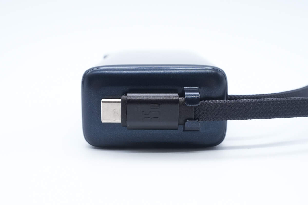 倍思 35W 超能充数显移动电源机身小巧美观,采用自带 USB-C 线设计,搭配一体式锁扣,不仅出门携带使用便捷,还可充当提绳,带来舒适的使用体验;产品还配备 1 个 USB-C 快充接口与电量数显屏,进一步丰富使用功能,大幅提升整体实用性。