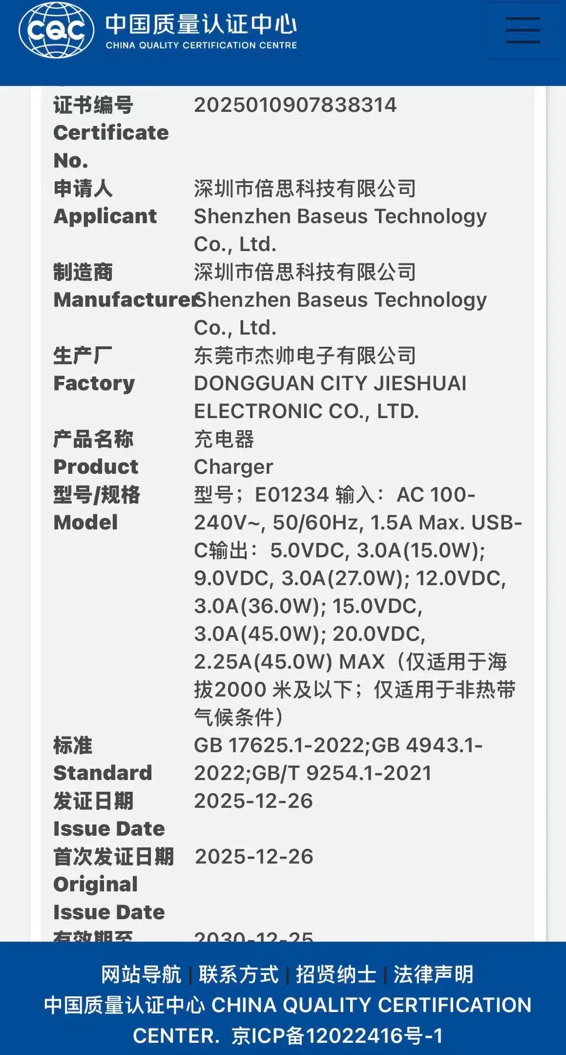 倍思45W氮化镓充电器由东莞这家工厂代工