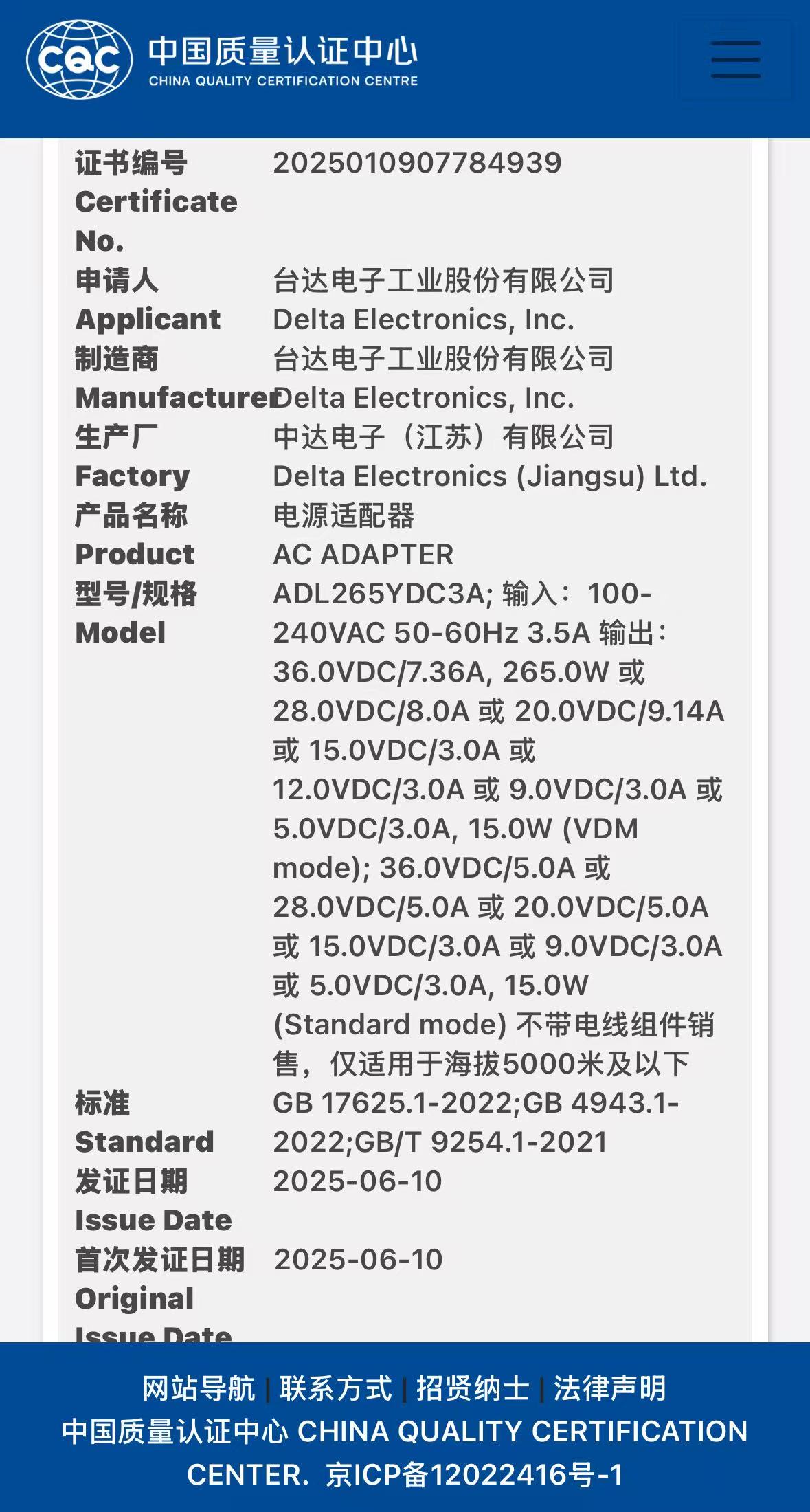 据充电头网拆解报告显示,这款产品(型号 ADL265YDC3A)由台达电子工业股份有限公司全程生产。台达电子凭借在电源适配器领域深厚的研发制造积淀与技术实力,从高功率电源核心调校、多电压档位精准匹配,到接口工艺优化与产品稳定性打磨,均实现行业高标准把控,为这款适配器的稳定输出、广泛兼容与长久耐用提供了坚实的品质保障。