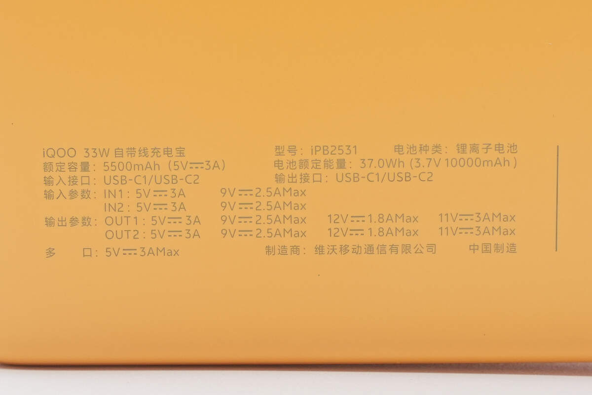 iQOO 33W 10000mAh自带线充电宝代工厂曝光